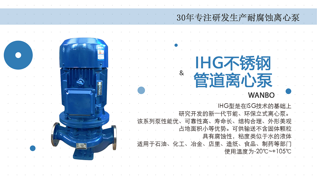 設(shè)計(jì)特點(diǎn):泵為立式結(jié)構(gòu),出入口直徑相同,且位于同一中心線上。它可以像閥門一樣安裝在管道中。形狀緊湊美觀,占地面小,建筑投資低,如電機(jī)加上防護(hù)罩可置于戶外使用。軸封是機(jī)械密封,材料根據(jù)需求選定,使用壽命一般超過一年。易于安裝和維護(hù),無需拆卸管道系統(tǒng),只需拆下泵體支架螺母即可提取所有轉(zhuǎn)子部件。根據(jù)流量和揚(yáng)程的要求,采用串、并聯(lián)運(yùn)行方式。可根據(jù)管道布置的要求使用泵的垂直或水平安裝。用途:適用于輕紡、石油、化工、制藥、衛(wèi)生、食品、煉油等工業(yè)輸送化學(xué)腐蝕性液體。流量范圍:3T/h-720T/h,揚(yáng)程范圍:20m-150m,功率范圍:1.5kw-110kw,運(yùn)行溫度:-20℃—105℃。可根據(jù)實(shí)際工況要求變更配置。